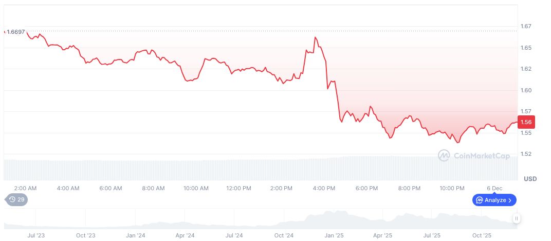 Sui (SUI), a cryptocurrency with a circulating supply of 3,736,866,360 tokens, currently trades at $1.56 with a market cap of 583,811,480. Its fully diluted market cap stands at 15,623,022,721. Over the past day, trading volume reached $912,925,256, although its price dropped by 6.39% within the same timeframe, according to CoinMarketCap. The Coincu research team suggests that Grayscale’s move, pending SEC acceptance, could align with growing ETF trends, provided regulatory frameworks adapt to evolving market criteria, aligning past practices with future directives.