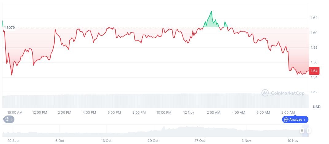 Bitlight (LIGHT) shows extensive growth, reaching a current price of $1.55 with a market cap of $66.65 million and a fully diluted market cap of $650.12 million. Over 24 hours, trading volume increased by 6.50%, with the price shifting slightly down by 0.48%, according to CoinMarketCap.