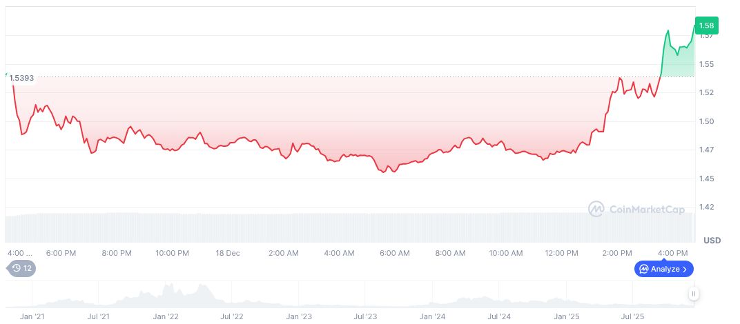 As of December 18, 2025, NEAR Protocol’s price is $1.58, with a market cap of $2.02 billion according to CoinMarketCap. The 24-hour trading volume saw a 4.40% fluctuation, while recent price changes include a 5.92% increase in the past 24 hours but a significant 49.93% decline over 90 days.