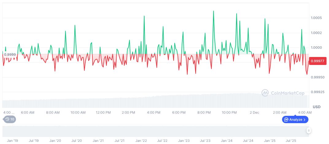 USDC maintains a steady price of $1.00 with a market cap of $77.42 billion, according to CoinMarketCap data. The stablecoin experiences a 2.63% market dominance and a 30.78% change in 24-hour trading volume, despite a slight 1.83% decline in price over the past 24 hours. The supply chain remains unbounded with 77.45 billion tokens in circulation.