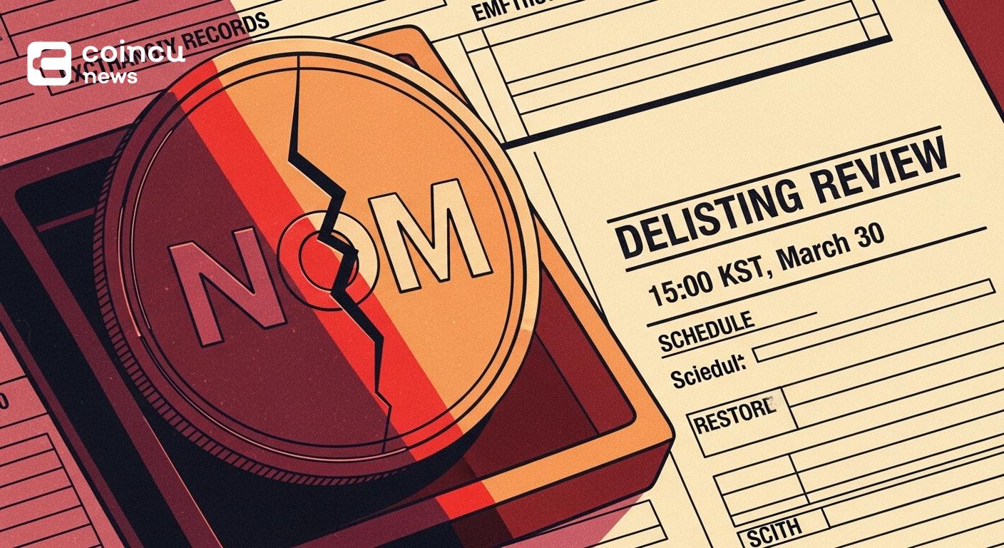 Deposits were suspended during the Trading Caution window per institutional reporting. Trading support for NOM pairs ends March 30, 2026, 15:00 KST. Withdrawal availability was not specified in the cited coverage.