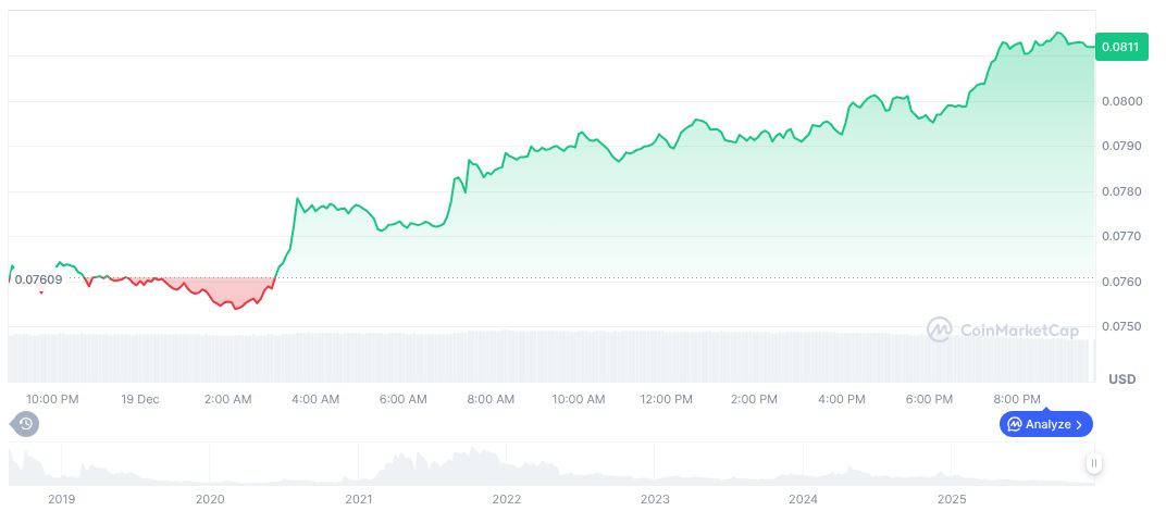 According to CoinMarketCap, Ontology Gas (ONG) trades at $0.08 with a market cap of $35.26 million. The circulating supply is 434.33 million, with recent price declines evident—7.13% up in 24 hours yet down 50.99% over three months, indicating volatility.