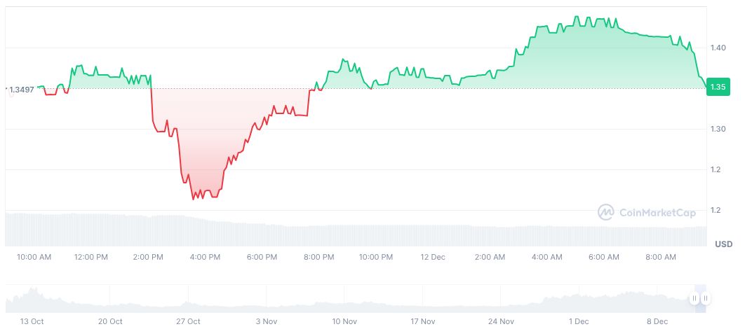 Umbra (UMBRA), currently priced at $1.36, shows volatility with a 29.55% increase over 30 days and a significant 213.13% rise over 90 days. Despite a zero-market cap, it registers a trading volume of $918,139.89 as per CoinMarketCap.