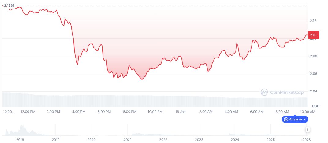 According to CoinMarketCap, GAS’s current price is $2.10 with a market cap of approximately $136.75 million. Over the past 30 days, GAS witnessed a 10.69% price increase. The 24-hour trading volume stands at around $3.75 million, with a 33.99% decrease. The circulating supply is 64,992,331 as of January 16, 2026.