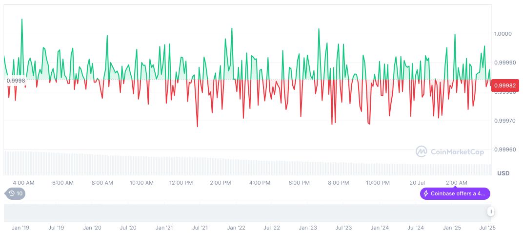 USDC(USDC), daily chart, screenshot on CoinMarketCap at 14:43 UTC on July 20, 2025. Source: CoinMarketCap