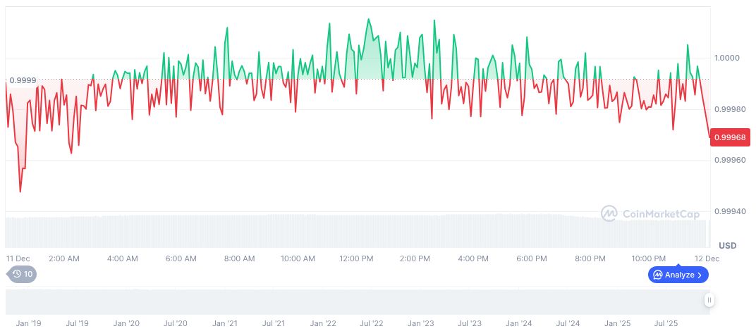 USDC maintains a stable price of $1.00, as reported by CoinMarketCap, with a market cap of $78.58 billion USD and a market dominance of 2.52%. Trading volume reached $12.68 billion USD within 24 hours, showcasing its consistent demand. The asset’s price exhibited minimal fluctuation over 24 hours, reflecting its stability.