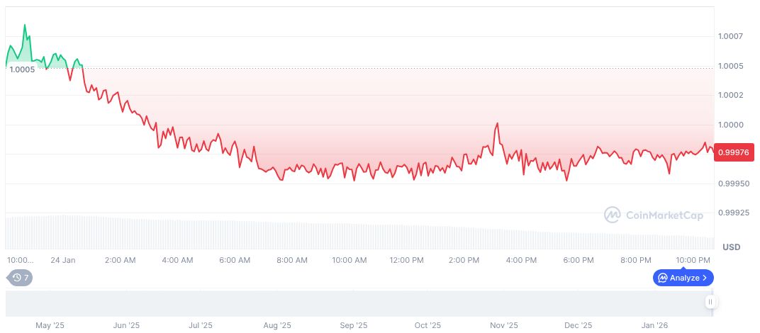 According to CoinMarketCap, USD1 maintains a market capitalization of $4.69 billion with a 24-hour trading volume of $2.51 billion. However, its trading volume plummeted 63.08% over the past 24 hours. Price remains at $1.00 as of January 24, 2026, demonstrating minor fluctuations over 90 days.