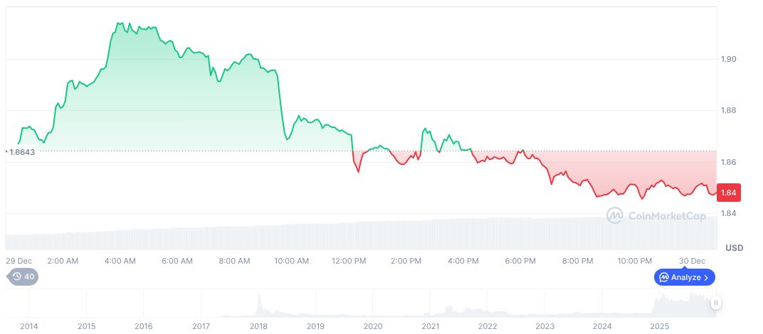 According to CoinMarketCap, XRP’s current price is $1.85, with a market cap of $111.93 billion and a 3.80% market dominance. Over the past 90 days, XRP’s value has decreased by 34.74%. Recent trading volume increased by 115.25% in 24 hours, reflecting ongoing market volatility.