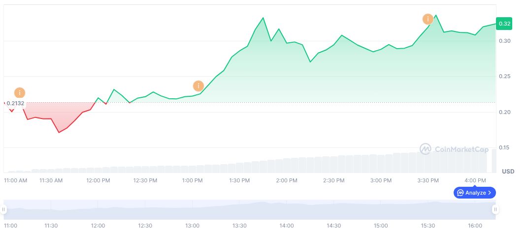 CoinMarketCap data reports Moonbirds (BIRB) presently at $0.32 with a market cap of $91.13 million. Trading volumes surged by 33,283.55%, indicating heightened demand post-announcement. The token’s market dominance remains minimal. Moonbirds’ asset figures reveal a noticeable rise of 95.78% across various timeframes.