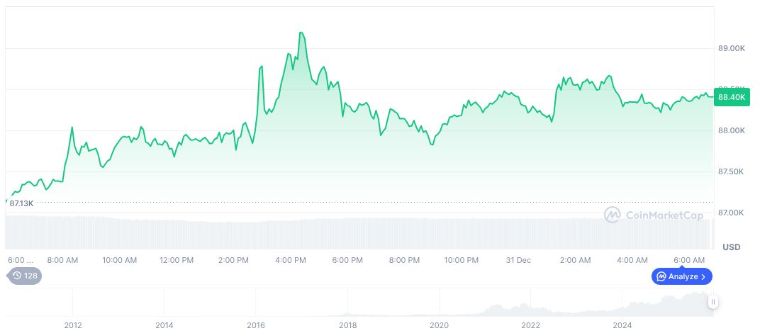 As per CoinMarketCap, Bitcoin maintains a strong market presence with a current price of $87,807.76 and a market cap of approximately $1.75 trillion as of January 1, 2026. Bitcoin represents 59.01% of the market, albeit with a recent 24-hour decline of 0.84%.
