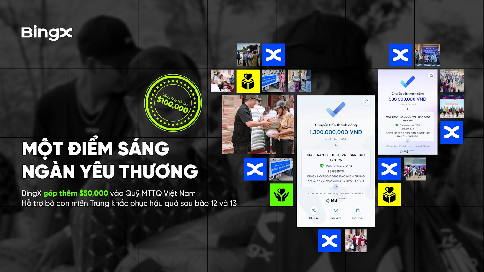 As flooding continued to spread through Central Vietnam, BingX launched a second support phase worth $50,000, all of which was transferred directly to the Vietnam Fatherland Front to reinforce relief budgets for regions affected by Typhoons No. 12 and 13.