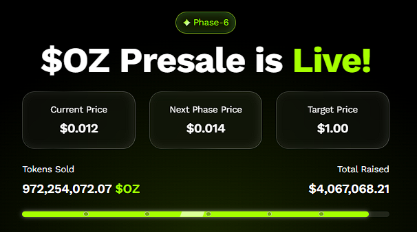What makes Ozak AI different from speculative presales is its technological foundation. The project has already raised over $4 million and sold more than 970 million tokens, signaling early conviction among whales and retail investors alike.