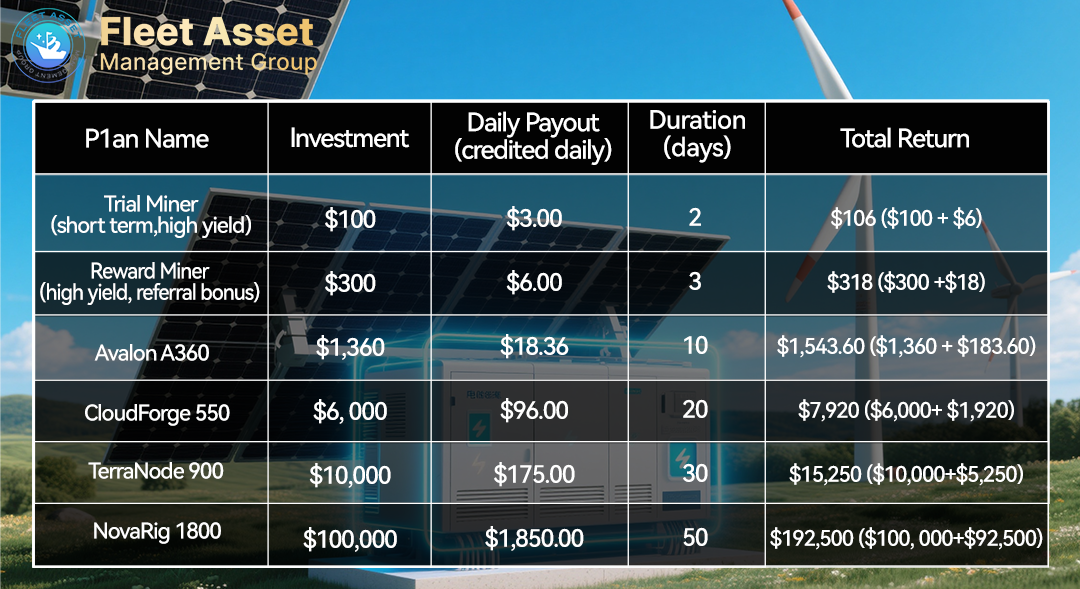 Fleet Miner is a safe, lucrative, and future-proof cloud mining solution, whether you are a small investor who wants to begin with a 100 dollar investment or a professional willing to take on high-value contracts.